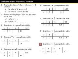 Direct And Inverse Proportion Table Of Values Worksheet By