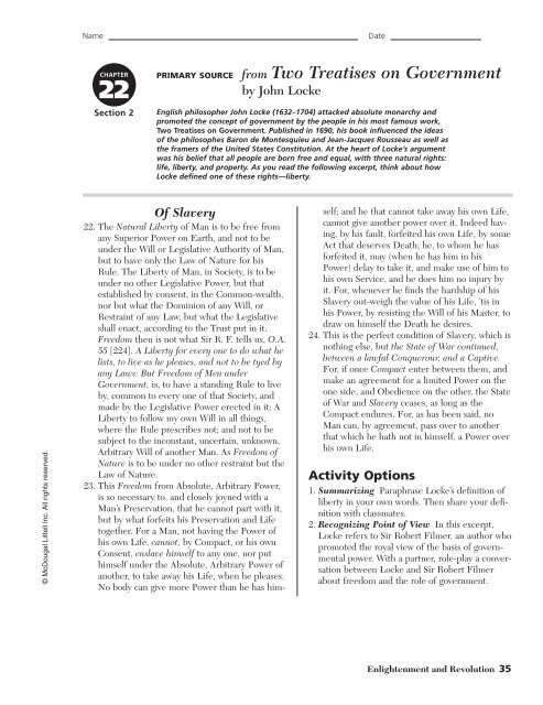 Within a government as well as for the governments and societies themselves. Excerpt from john lockes two treatises on government 1690 enlightenment in europe printable dbq worksheet for world history scroll down to print pdf file.