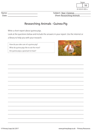 Science Worksheet Researching Animals Guinea Pig By Primaryleap