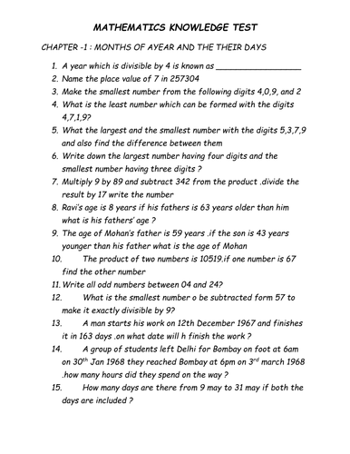 Mathematics Knowledge Test By Amir2733 Teaching Resources Tes