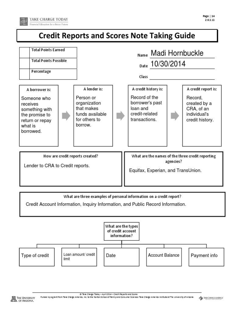 Credit Reports And Scores Note Taking Guide 2 6 1 L1 Credit