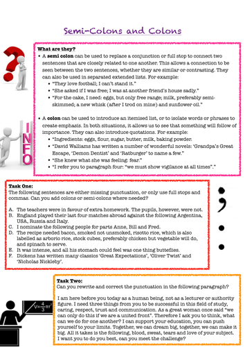 Colons And Semi Colons Worksheet By Literacystars Teaching Resources