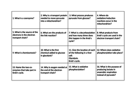 Question And Answer Cards For A Level Respiration By Jayto