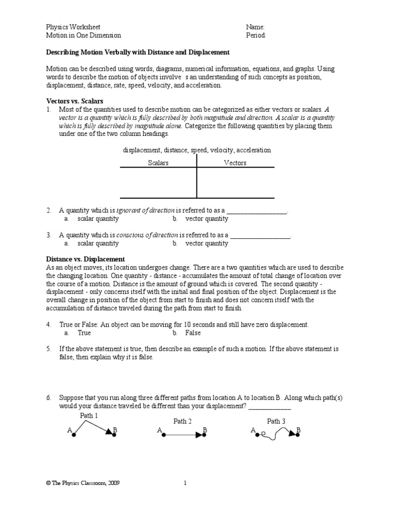 Printables Of Motion In One Dimension Problem A Worksheet Answers