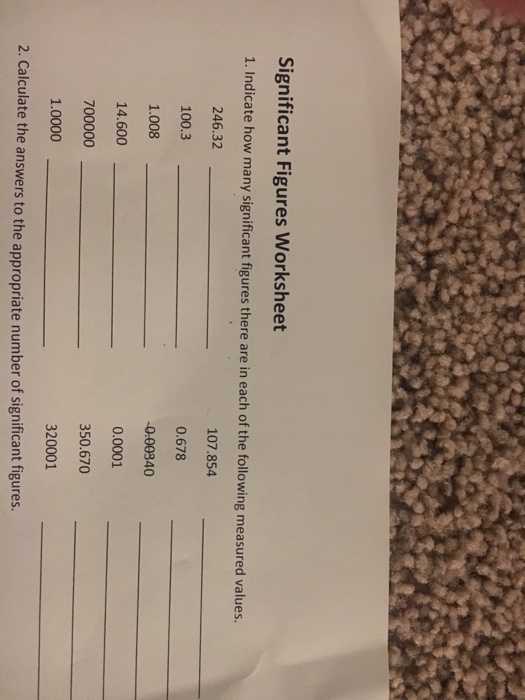 Significant Figures Worksheet 1 Worksheet For 10th 12th Grade