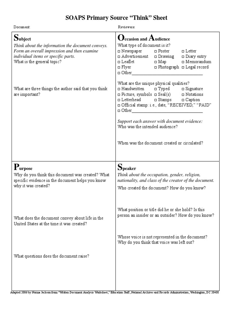 Written document analysis worksheet author. Photograph analysis worksheet designed and developed by the education staff national archives washington dc. Where could you find answers to them.