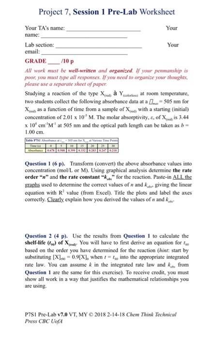 Solved Project 7 Session 1 Pre Lab Worksheet Your Your T