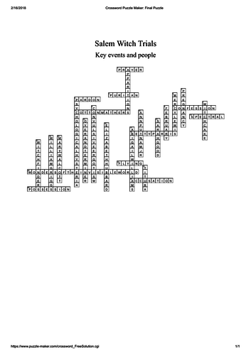 The Salem Witch Trials Crossword Wordmint