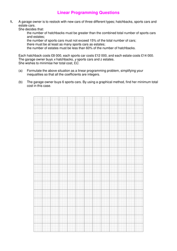 Linear Programming Worksheet By Srwhitehouse Teaching Resources