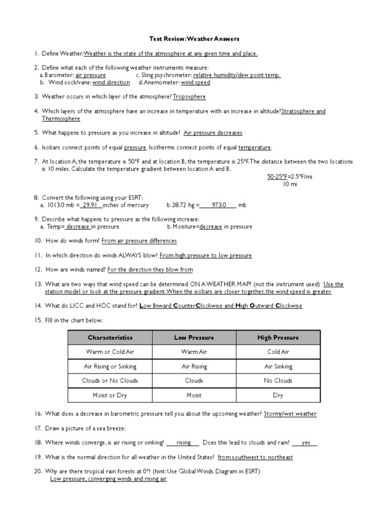 Weather Review Sheet Answers Atmosphere Of Earth Rain