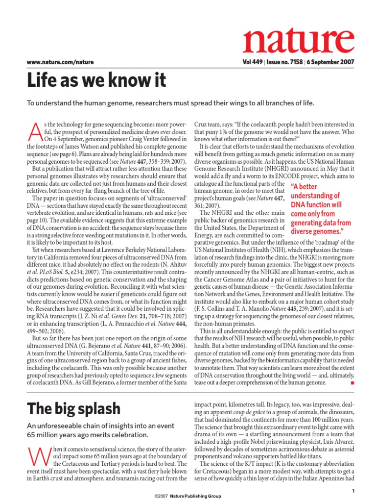 Nature Magazine 7158 2007 09 06 Neanderthal Genome