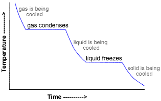 Just like heating curves cooling curves have horizontal flat parts where the state changes from gas to liquid or from liquid to solid.