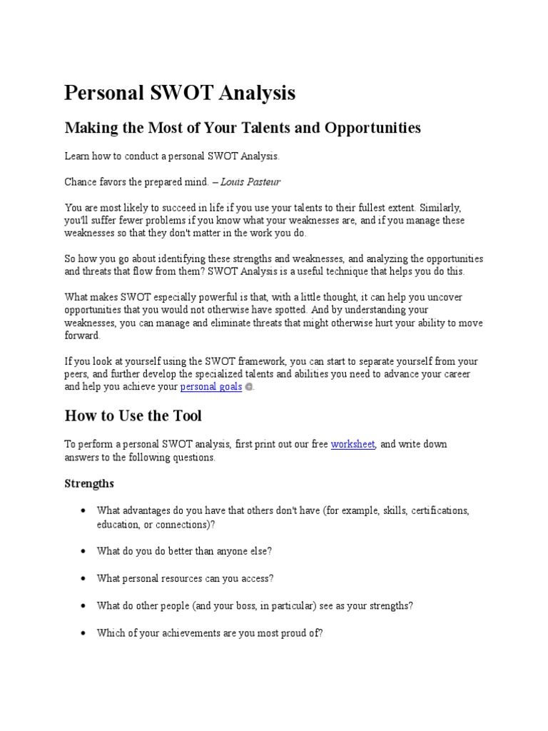 Personal Swot Analysis Worksheet