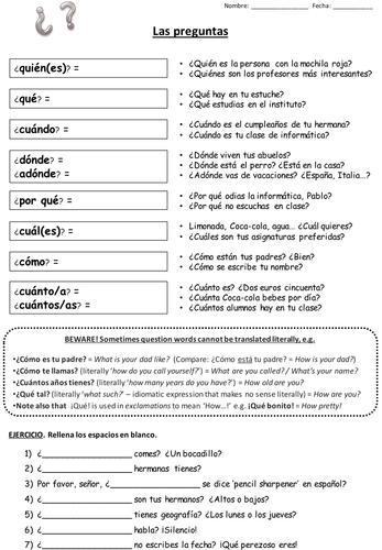 The worksheet will bring up key points you need. Quiz worksheet goals. While spanish just like english uses a question mark as punctuation at the end of questions it also does a little something extra.