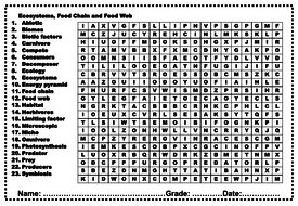 Ecosystems Food Chain And Food Web Wordsearch Worksheet By Swati3