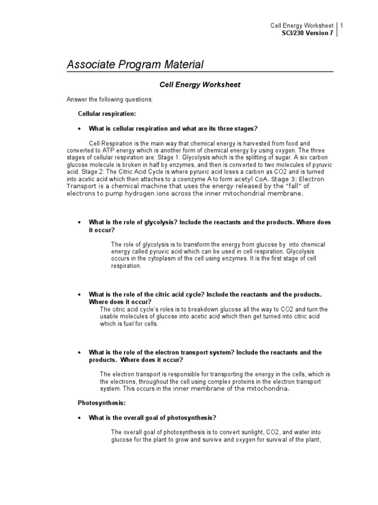 Week 3 Checkpoint Sci230 R7 Cell Energy Cellular Respiration