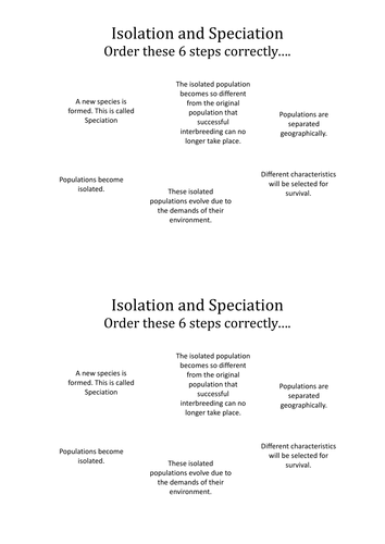 Speciation Card Sort And Definition Match By Olivia Calloway
