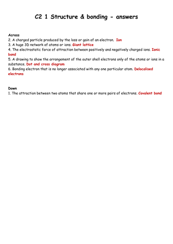 C1 Structure And Bonding Crossword With Answers By Embedagogy