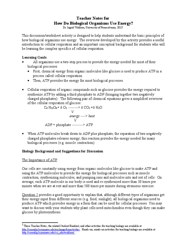 Cellular Respiration Worksheet Usbiologyteaching Com