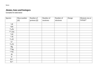 Isotopes Ions And Atoms Worksheet Learningwork Ca