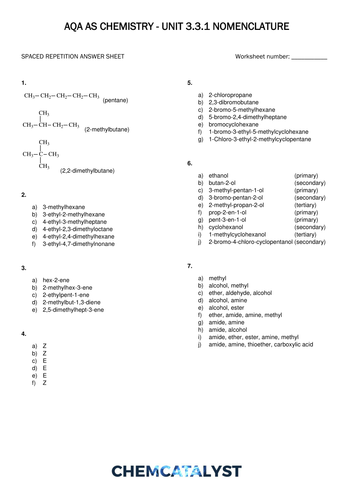 Edexcel As Chemistry Srq Worksheet Nomenclature By