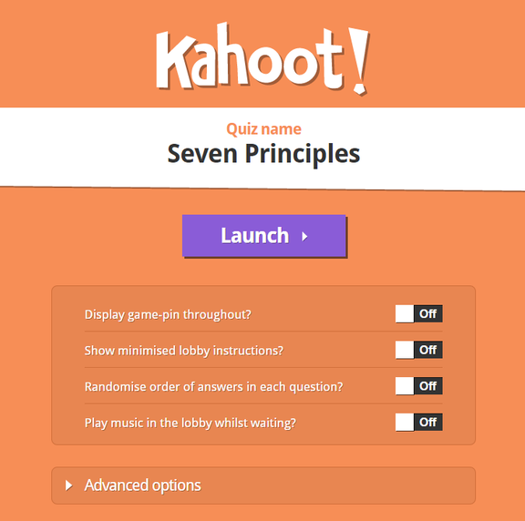 The students will create an illustrations or cut out pictures to fill in each square to represent each of the seven principles.