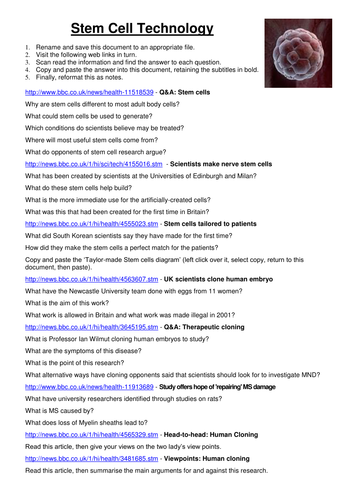 Stem Cells Guided Internet Research By Bobfrazzle Teaching Resources