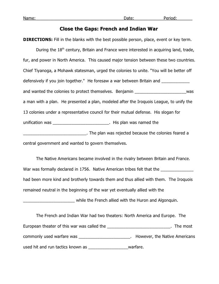 Showing top 8 worksheets in the category answers to french and indian war. The french and indian war changed the relationship between the british colonies and the mother country. This worksheet will help your students learn how to interpret.