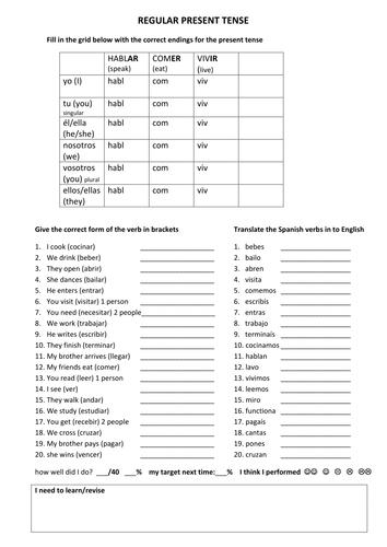 Some of the worksheets displayed are work 2 work 2 ar verbs in the preterite present tense regular er verbs 1 verb conjugation work spanish conjugation chart simple tenses the present tense regular present tense ar verbs sample beginner 29 35. Regular ar verbs 15 english to spanish 15 spanish to english. Log in to save your progress.