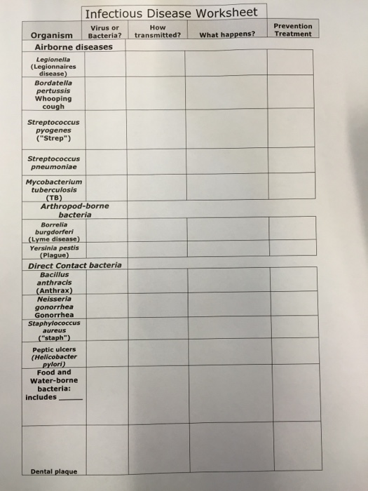 Infectious Disease Worksheet Answer Key Briefencounters
