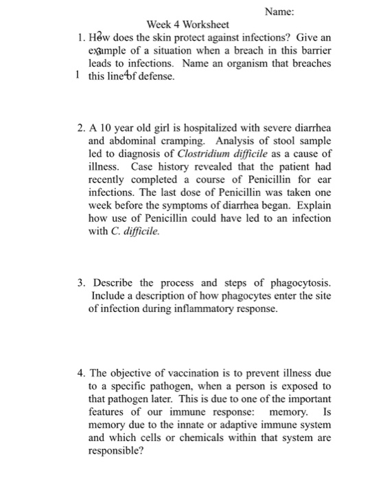 Solved Name Week 4 Worksheet 1 Hew Does The Skin Protec