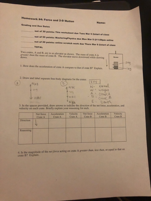 Solved Homework 4 Force And 2 D Motion Name Grading An