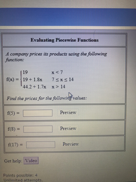 Solved Evaluating Piecewise Functions A Companmy Prices I