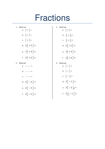 These mixed problems worksheets are great for working on adding subtracting multiplying and dividing two fractions on the same worksheet. Below are three additional grade 5 math worksheet with word problems involving fractions and the 4 basic operations. Mixed operations with fractions.