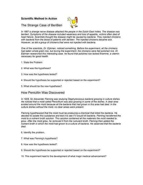 Scientific method in action scientific method in action the strange case of beriberi in 1887 a strange nerve disease attacked the people in the dutch east indies. The disease was beriberi. Science resources help kids understand the fundamentals of science in a hands on manner.