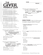 The Giver Novel Questions Quizzes And Activities