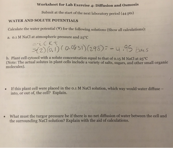Water Potential And Osmosis Worksheet